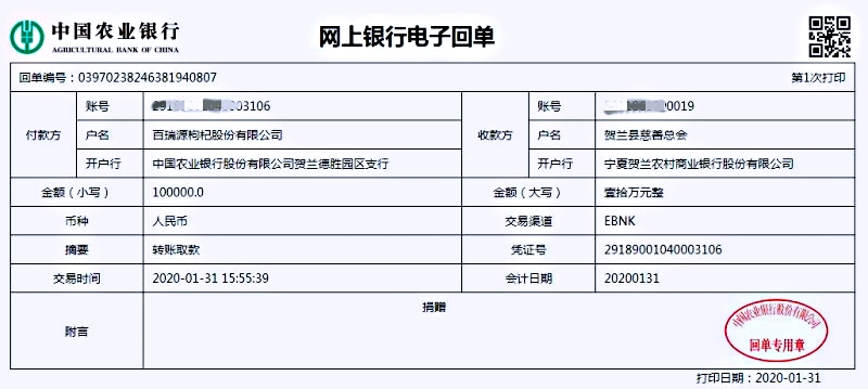 永利yl23411集团捐赠枸杞随同宁夏援助湖北医疗队赴武汉增援