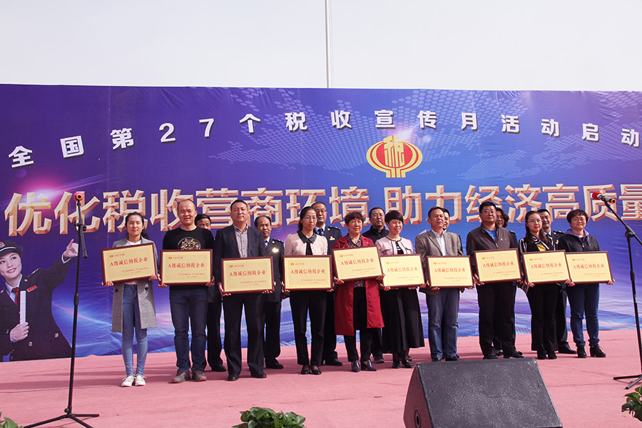 永利yl23411集团荣获2017年度贺兰县“A级诚信纳税企业”