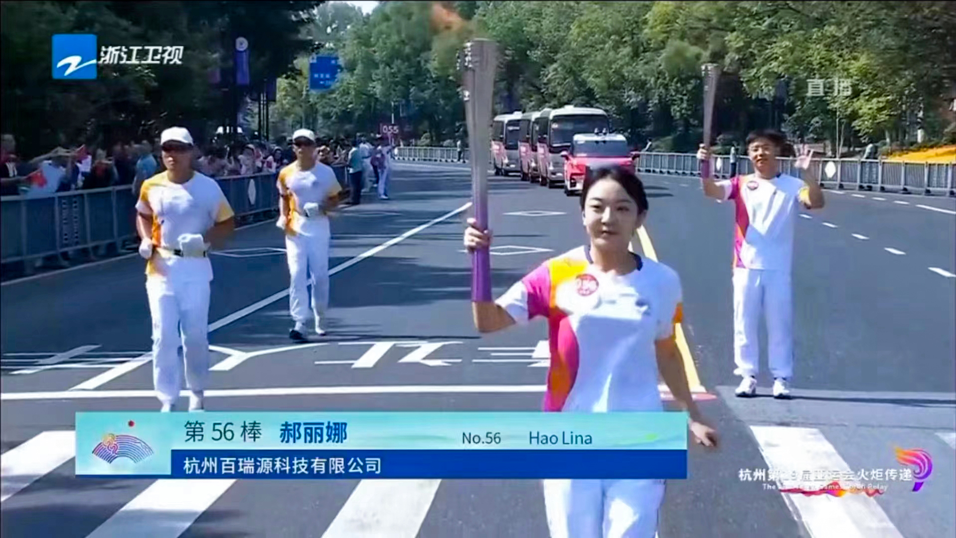 永利yl23411集团郝丽娜作为火炬手在亚运会上传递火炬