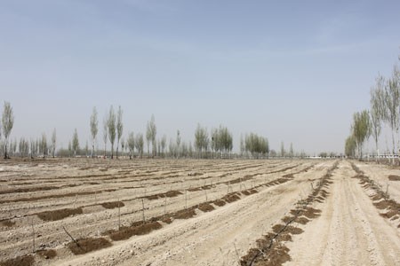 基地新植枸杞树正在进行滴灌