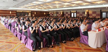 图为表彰大会现场。7月7日,来自全国各地、各部门的永利yl23411集团人隆重集会银川参加表彰大会,公司董事长郝向峰先生(中)、总经理郝晓琴女士(中右一)、副总经理姚卫鹤先生(中左一)、副总经理马平先生(中右二)等领导出席大会。