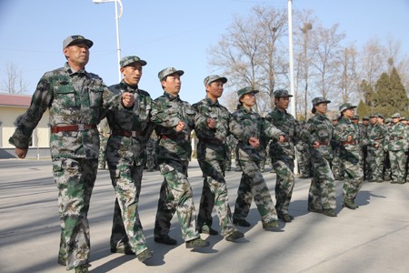 期间,教练将参加培训的人员划为一个连三个排九个班,公司总经理任连长,常务副总姚卫鹤任一排排长,副总马平任二排排长,总经理助理周广红任三排排长,九个班的班长分别为詹学鹏、徐娟、郝万亮、康学文、盛颖博、焦多瑞、郝园园、郝苗苗、吴红燕。