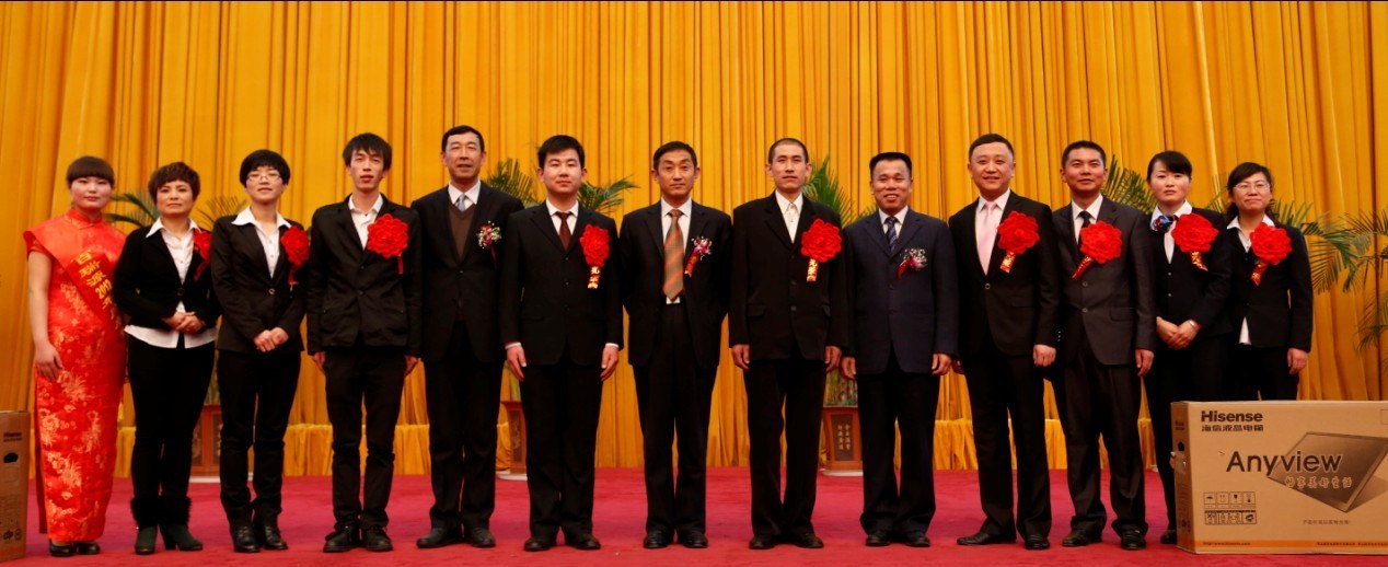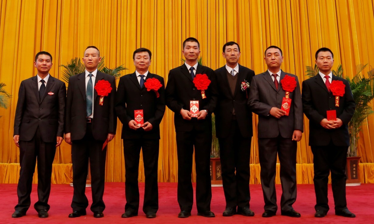 公司常务副总姚卫鹤(右五)等领导为年度优秀管理者颁奖并合影留念