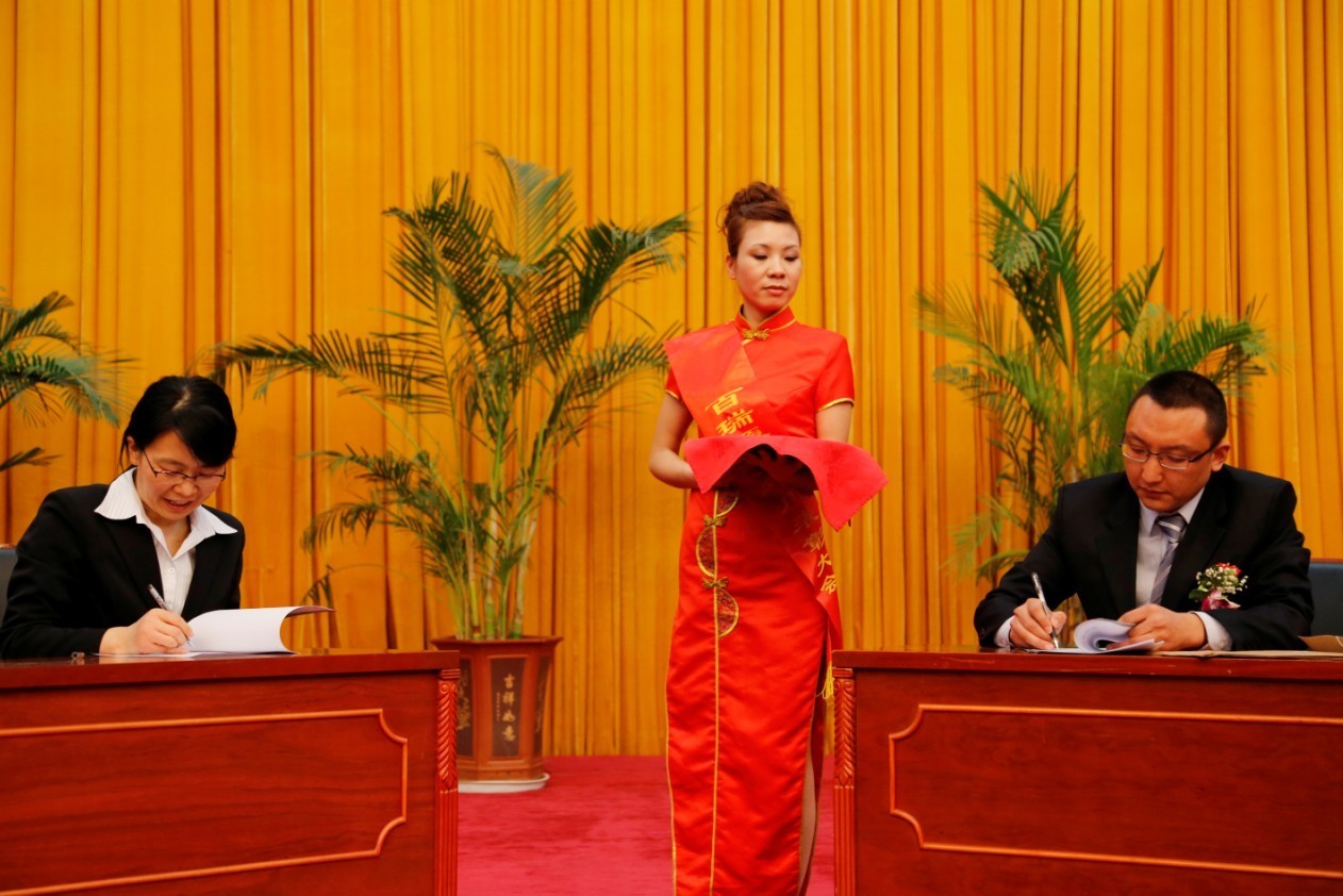 营销中心总监郝万亮(右一)与总经理郝晓琴女士(左一)签订责任状