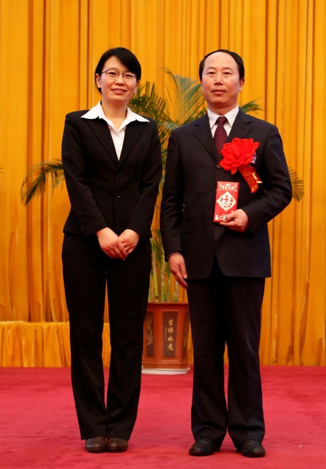公司总经理郝晓琴女士(左一)为技术总监张金宏颁发发明奖并合影留念