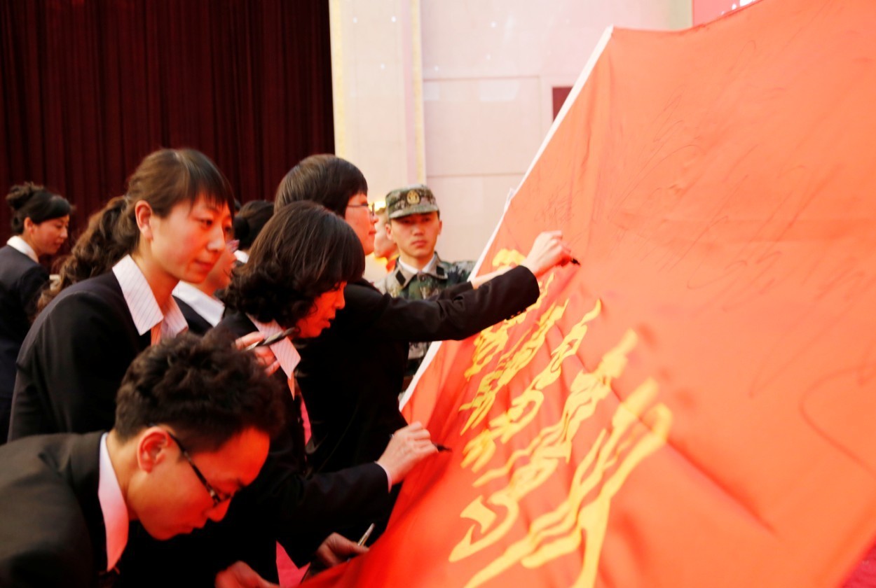 营销中心各部门负责人在誓师大会上签订责任状