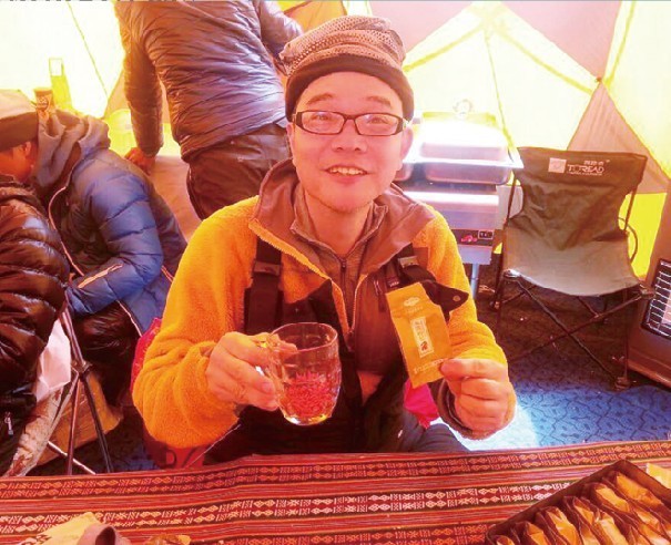 登峰队员在帐篷内服食永利yl23411集团枸杞