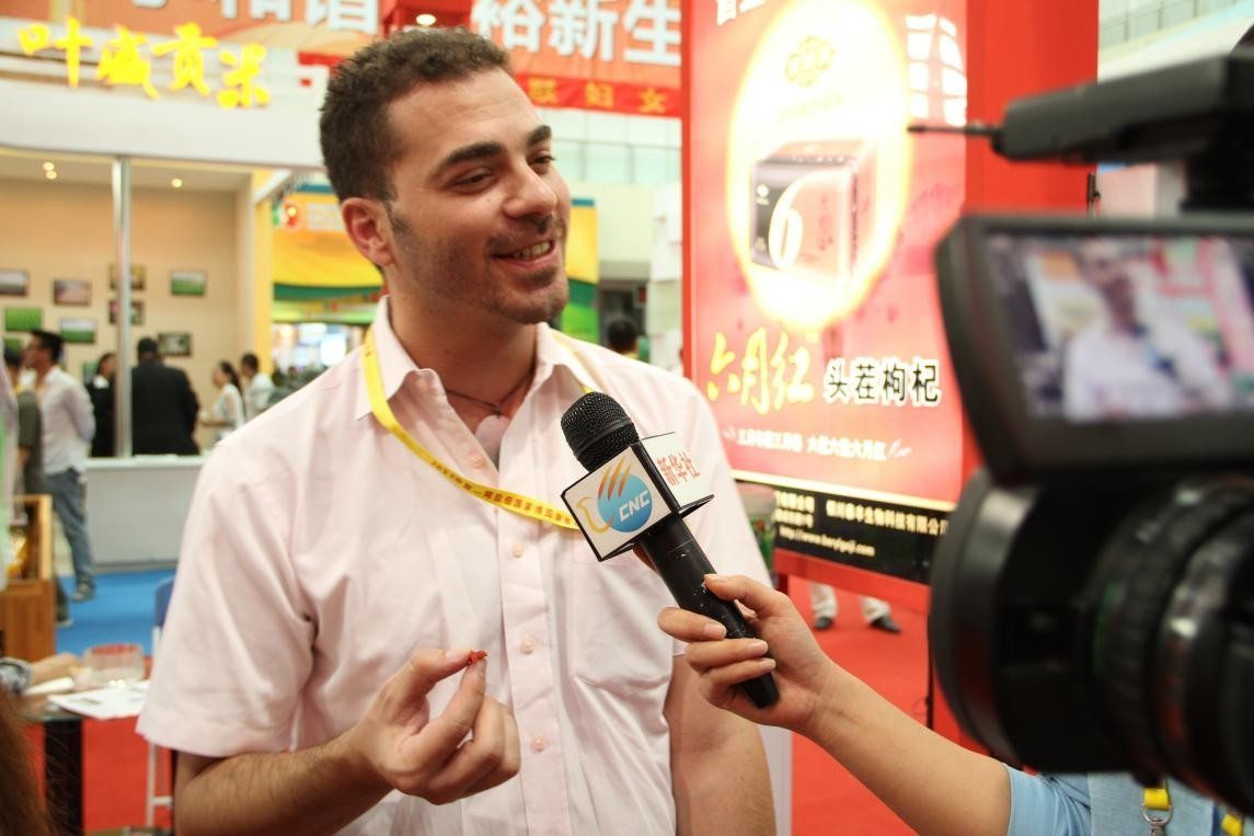 阿拉伯国家客商在品尝永利yl23411集团枸杞时接受记者采访