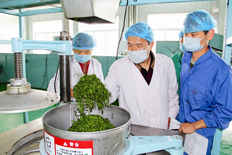 炒茶大师洪立根(中)正在指导炒制枸杞芽茶