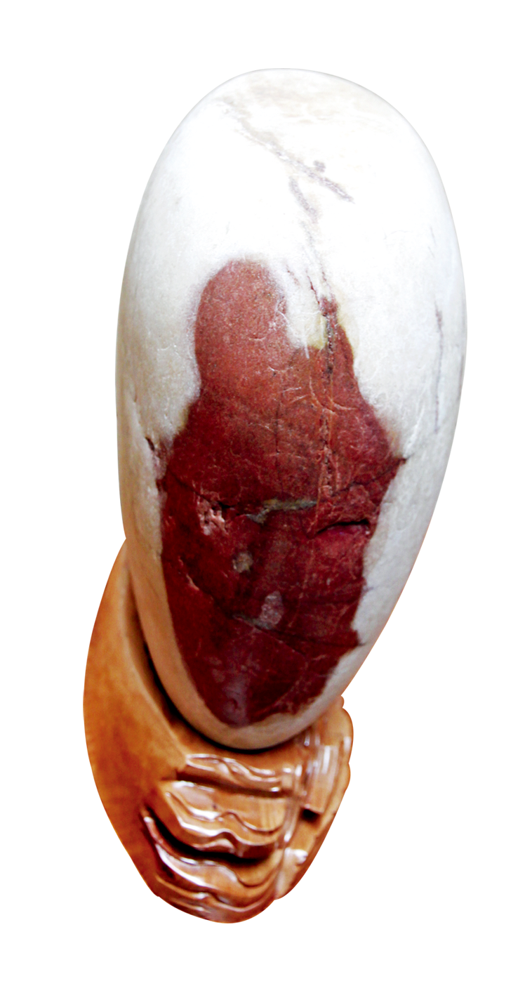 据悉,这块黄河奇石,是一位长年生活在黄河边种植枸杞的老农在黄河边休息时,忽然发现在黄河水浸漫下的石堆里,像有一颗红红的宝石一样的东西在阳光的反射下熠熠生辉,老农赶快跑过去捡了起来发现,刚才在水中熠熠生辉的是一块石头。只见洁白如玉的石头上,一颗即形似宁夏地图,又像一颗从枸杞树上摘下的巨大枸杞鲜果,在枸杞果的旁边,一条仿若活蹦乱跳的金鱼,在金鱼的旁边,一位形似老寿星的高僧手拄拐杖,身披袈裟,微笑着看着眼前的一切。三副鲜红的图案嵌镶在椭圆的石头上,活灵活现,生机盎然。这块奇石在老农家中收藏十多年,老人已经杖朝之年,但身体非常硬朗,还经常下地种枸杞。老人说,石头上有枸杞,有鱼,有寿星,像他家的光景红红火火,年年有余,家人延年益寿,因此命名为“黄河杞石”,相信这块有灵性的石头会带给更多的人福寿安康。