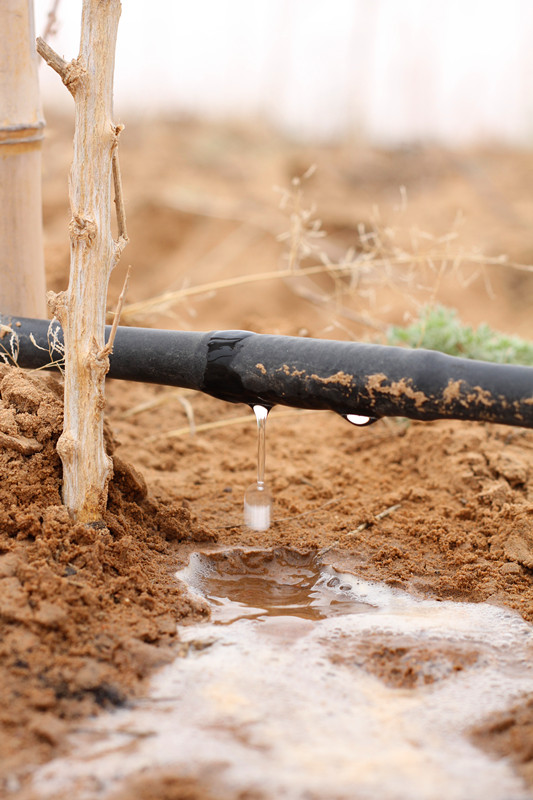种在荒漠中的树苗,必须及时浇水,否则很快就会干死。这是滴灌。