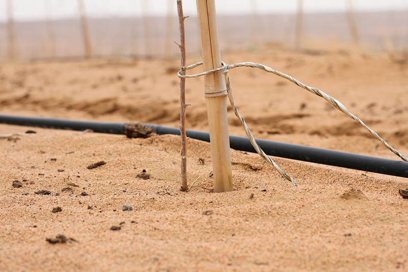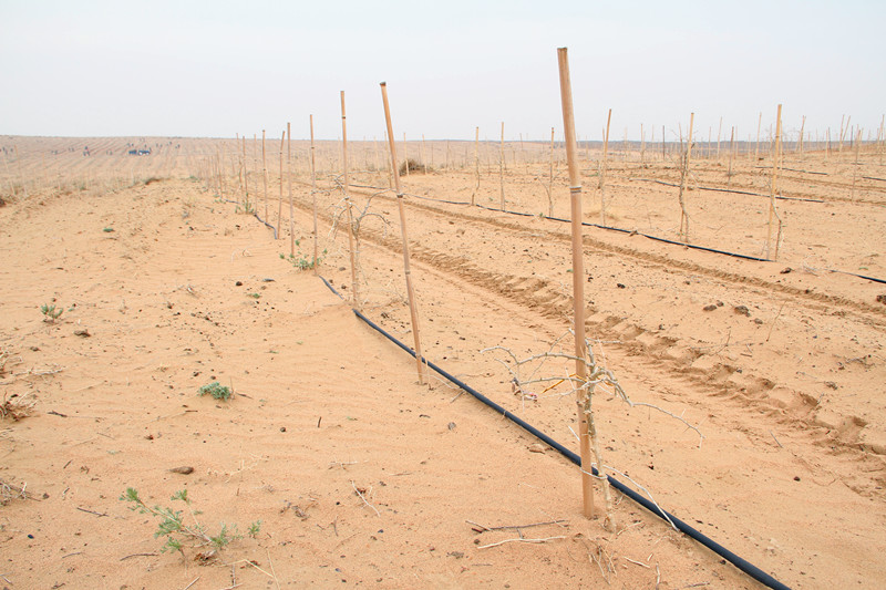 望不到边际的荒漠里,枸杞树苗已经扎下了根基。