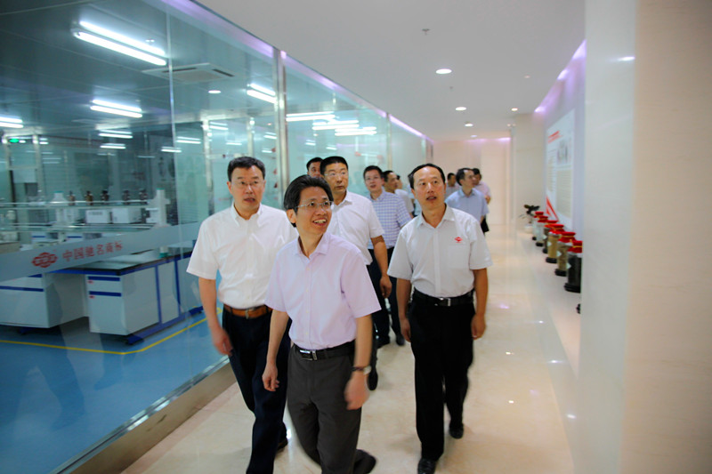 浙江工业大学党委书记梅新林(中)考察团一行考察永利yl23411集团研发实验室