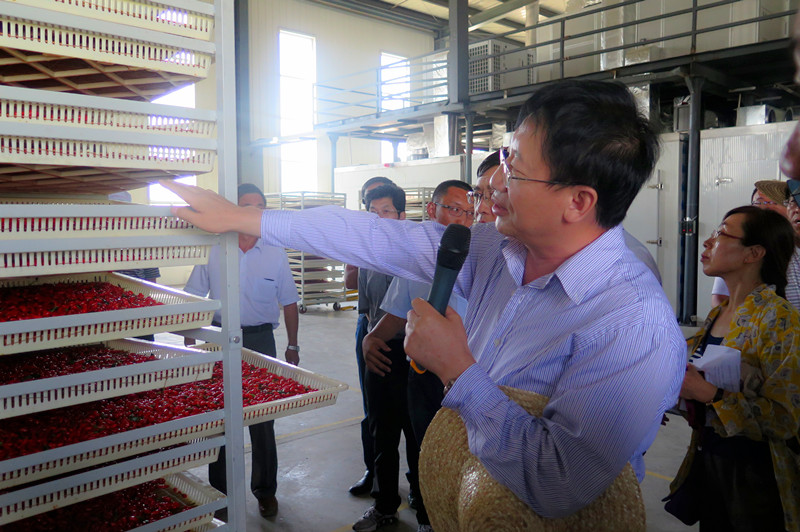 永利yl23411集团集团公司副总经理郝万亮向宁夏农林科学院院长周东宁介绍了永利yl23411集团中宁基地院地企合作项目取得的丰硕成果。自治区枸杞首席专家曹有龙向周东宁院长介绍了空气动力能烘干房对枸杞的营养及品质方面取得的突出成绩。周院长调研结束后表示,永利yl23411集团中宁基地和农科院在枸杞方面的合作项目取得了阶段性的成果,望双方继续加强合作,在种植、加工、研发等方面取得更大的突破,为宁夏枸杞产业的健康快速发展作出突出贡献。