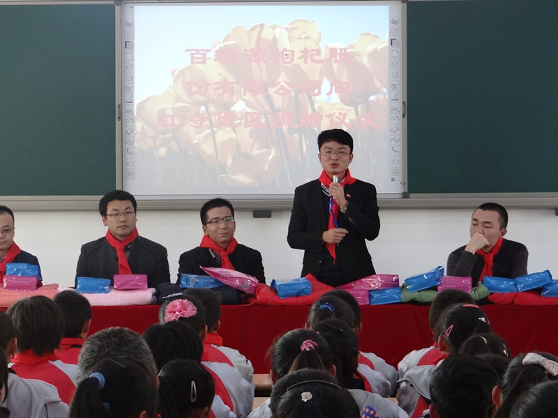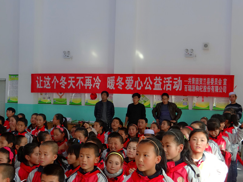11月13日,永利yl23411集团枸杞股份有限公司(简称永利yl23411集团)工会联合贺兰县团委,来到吴忠市红寺堡区燕宝小学,为学校贫困学生送去24箱棉衣和100盒休闲食品,开启了永利yl23411集团2015年“暖冬行动”的序幕。