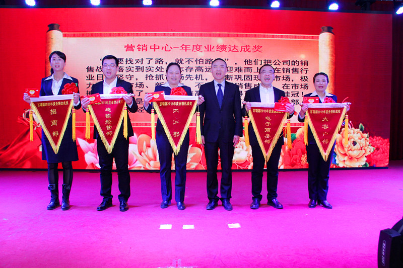 公司营销中心总监张国旺为业绩达成奖部门颁奖合影
