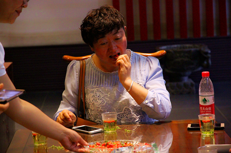 上午9时许,自治区食品药品监督管理局食品生产监管处副处长马泰及副调研员王洪亮、贺兰县市场监督管理局韩建云副局长等人员携市民监督员和媒体记者,走进永利yl23411集团食品研发实验室、检测实验室、生产车间,全面参观了永利yl23411集团的保健食品GMP车间和枸杞生产线,其后在永利yl23411集团枸杞养生馆品尝了永利yl23411集团枸杞系列产品,对永利yl23411集团“五位一体”的全产业链模式打造的食品安全给予高度评价和肯定,并表示要以永利yl23411集团食品安全模式为标准,广泛宣传食品安全法规和食品安全科普知识,让广大消费者提高维权意识,共同参与食品安全的社会监督。