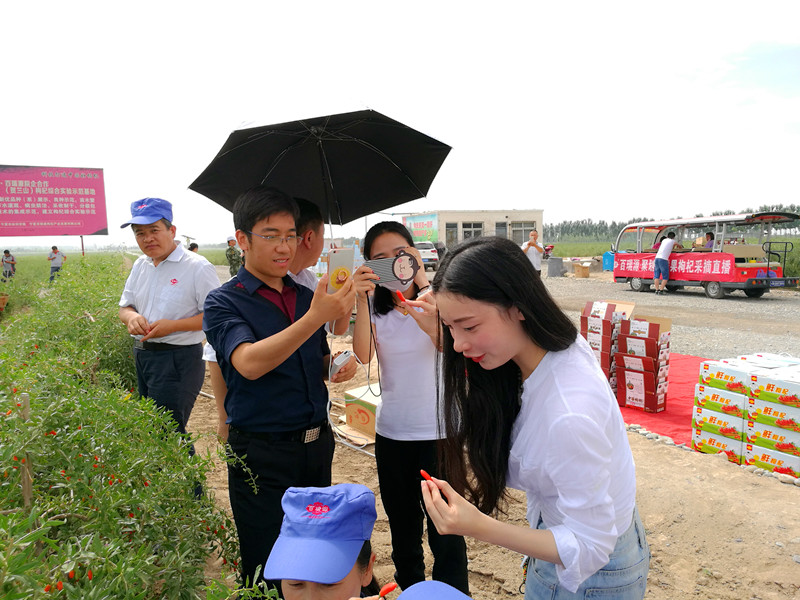 宁夏枸杞园迎来首个网红妹子直播枸杞采摘