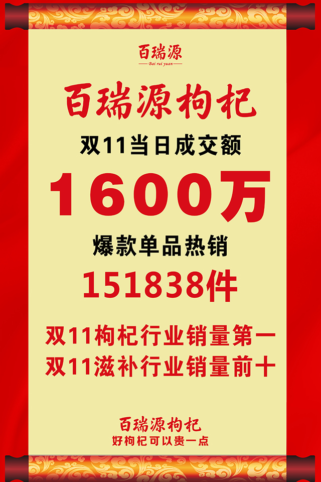 永利yl23411集团双11再创新高,稳居枸杞行业第一