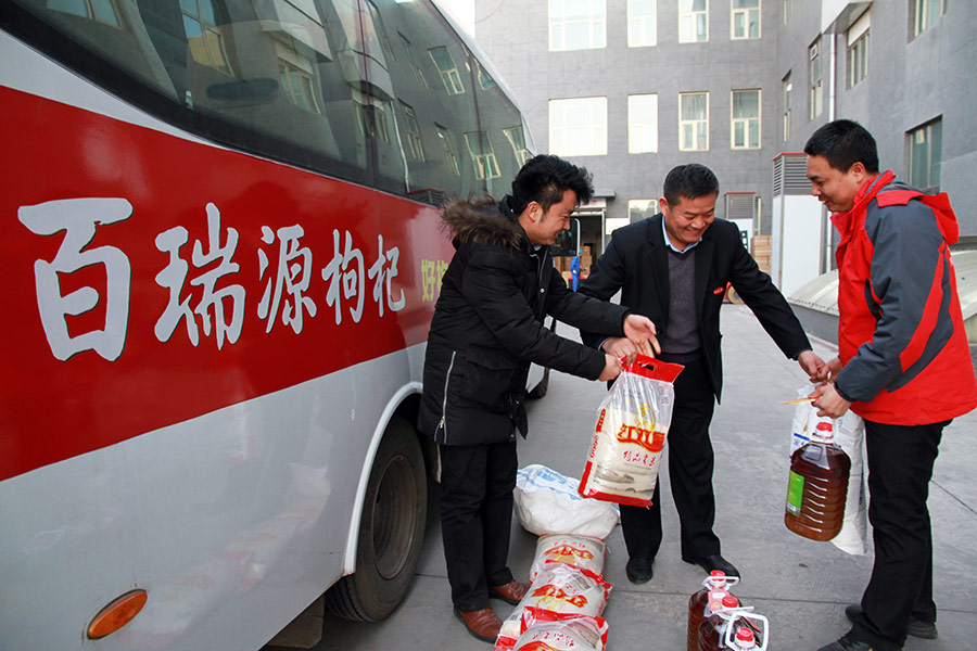 2月6日,永利yl23411集团枸杞股份有限公司党总支书记马平、生产中心总监郝万飞、工会主席谢慈带着公司领导的深情厚谊,带着公司党总支和工会的真诚祝福,组成慰问团,入户走访慰问公司困难党员和困难职工。2018春节,永利yl23411集团公司投入近1.6万元资金,用于开展“送温暖”活动。 当日,慰问团一行冒着严寒,驱车先后到家住贺兰县郊区的特困职工郝小龙、孔令聪家中慰问,并分别送去慰问金2000元。在杨瑞娥家中,当了解到她的孩子身患残疾,家中生活非常困难时,公司党总支书记马平递上慰问金,关切地说:“员工是公司的财富,公司的发展壮大要依靠全体职工,公司领导、党总支和工会的同志心里时刻装着员工,时刻关心你们的冷暖,有困难找组织,祝你们新春吉祥、身体健康、阖家幸福。” 随后,慰问团不顾舟车劳顿,相继慰问了马辉等9名困难员工,并分别送去慰问金1000元。慰问团还为每位困难员工送去大米、面粉各20斤、油10斤。 为了更好地尽到责任,公司工会按照公司领导的要求,时刻关注员工的物质和精神文化需求,近年来先后投入20余万元,用于在每年元旦、春节和重大节日前夕,为困难党员、困难员工开展“送温暖”及帮扶慰问活动。