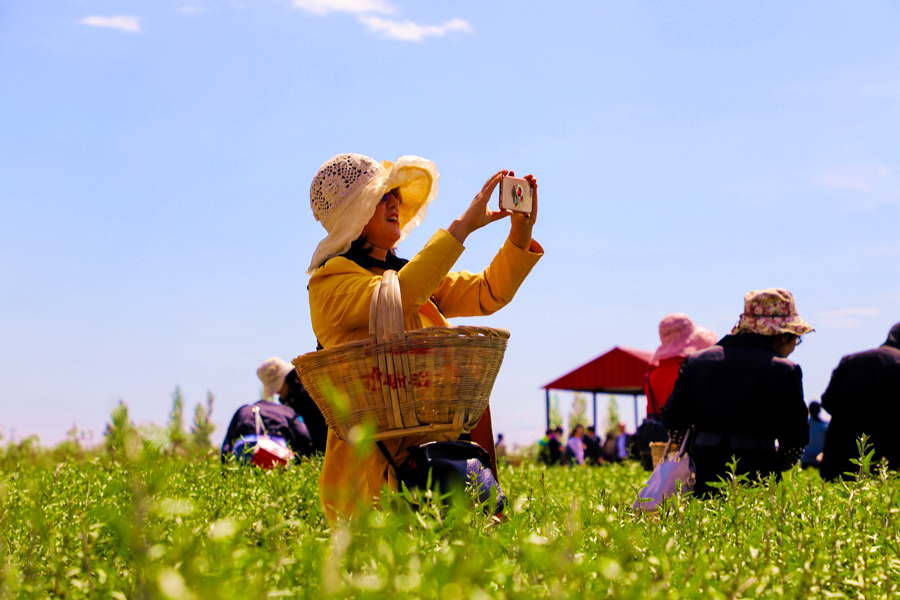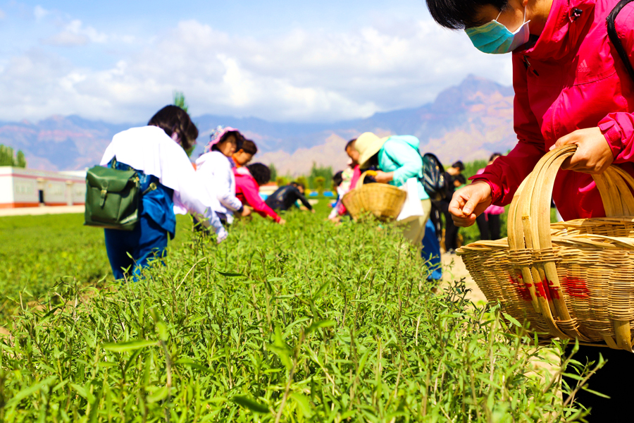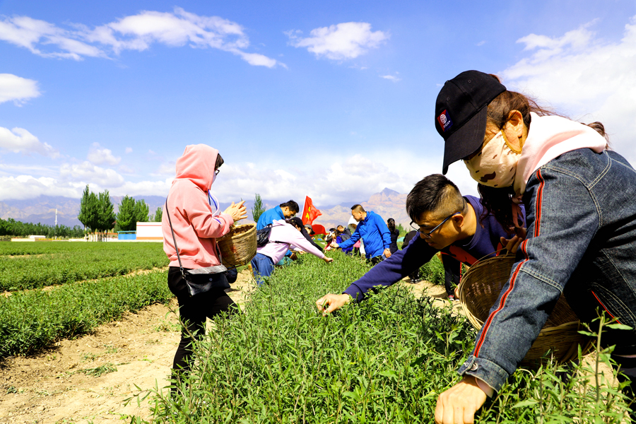 永利yl23411集团有机枸杞茶园采茶正当时,自治区总工会、妇联都来帮忙了!