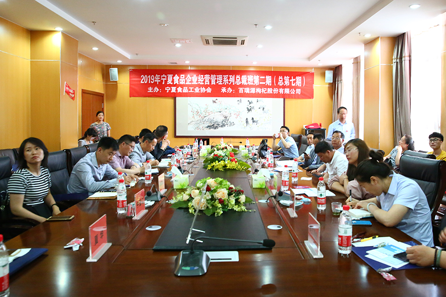 5月25日下午,由宁夏食品工业协会组织的,由21家协会成员企业,以及核心岗位精英42人组成的“2019年宁夏食品企业经营管理系列总裁班第二期”的学员一行前往永利yl23411集团进行为期半天的总裁班课程。他们不仅对中国枸杞馆(宁夏永利yl23411集团枸杞博物馆)进行实地观摩,更通过市场营销、创新研发两堂行业视角前卫,解读细致,格局清晰的总裁课程,对永利yl23411集团枸杞品牌战略和研发技术转化有了全面的认识。