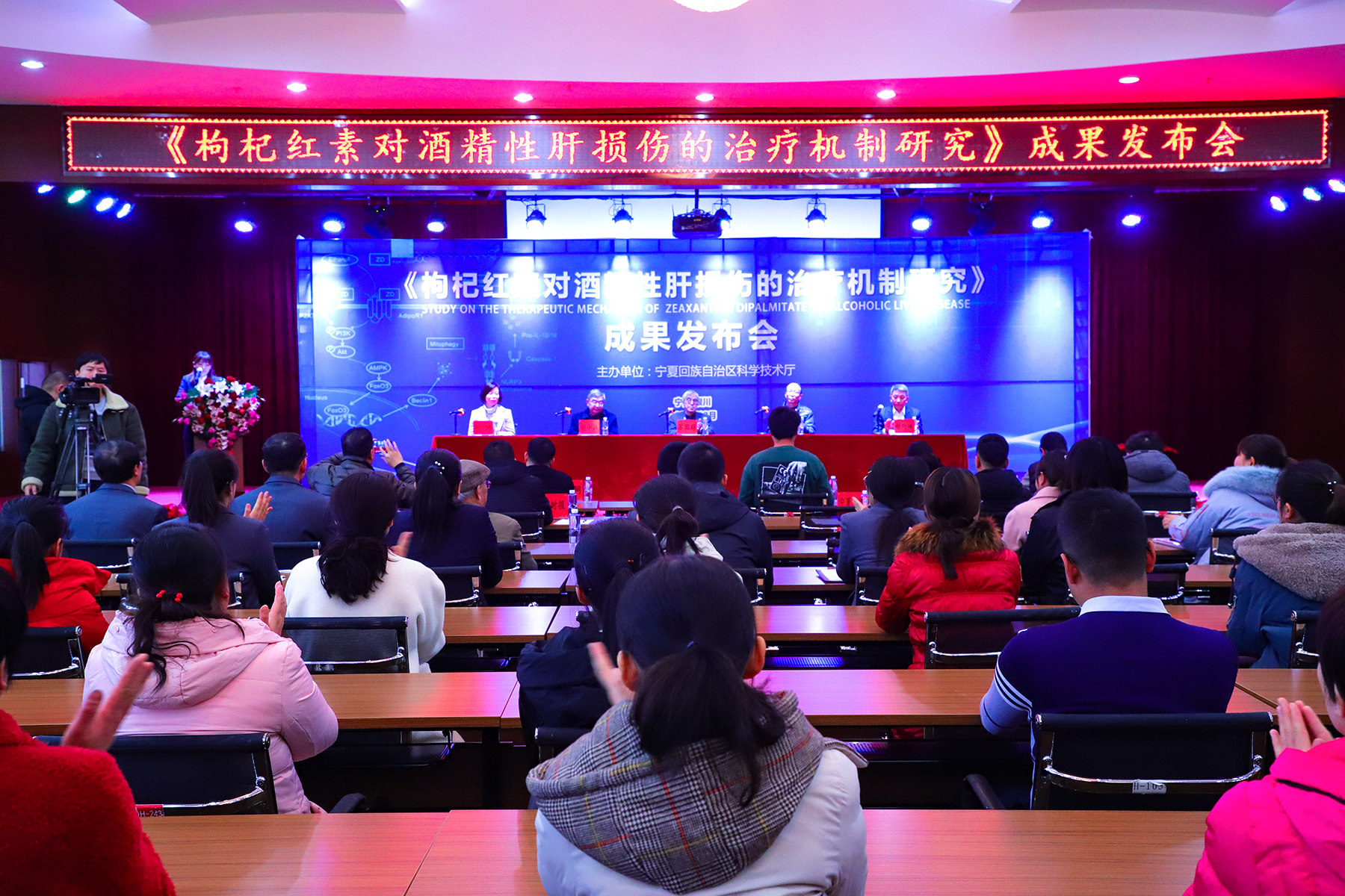▲ 国内主流媒体聚焦成果鉴定发布会 宁夏科技厅科技发展战略和信息研究所所长李学发布最终专家成果鉴定:《枸杞红素对酒精性肝损伤的治疗机制研究》顺利通过院士为组长的专家组的成果鉴定。