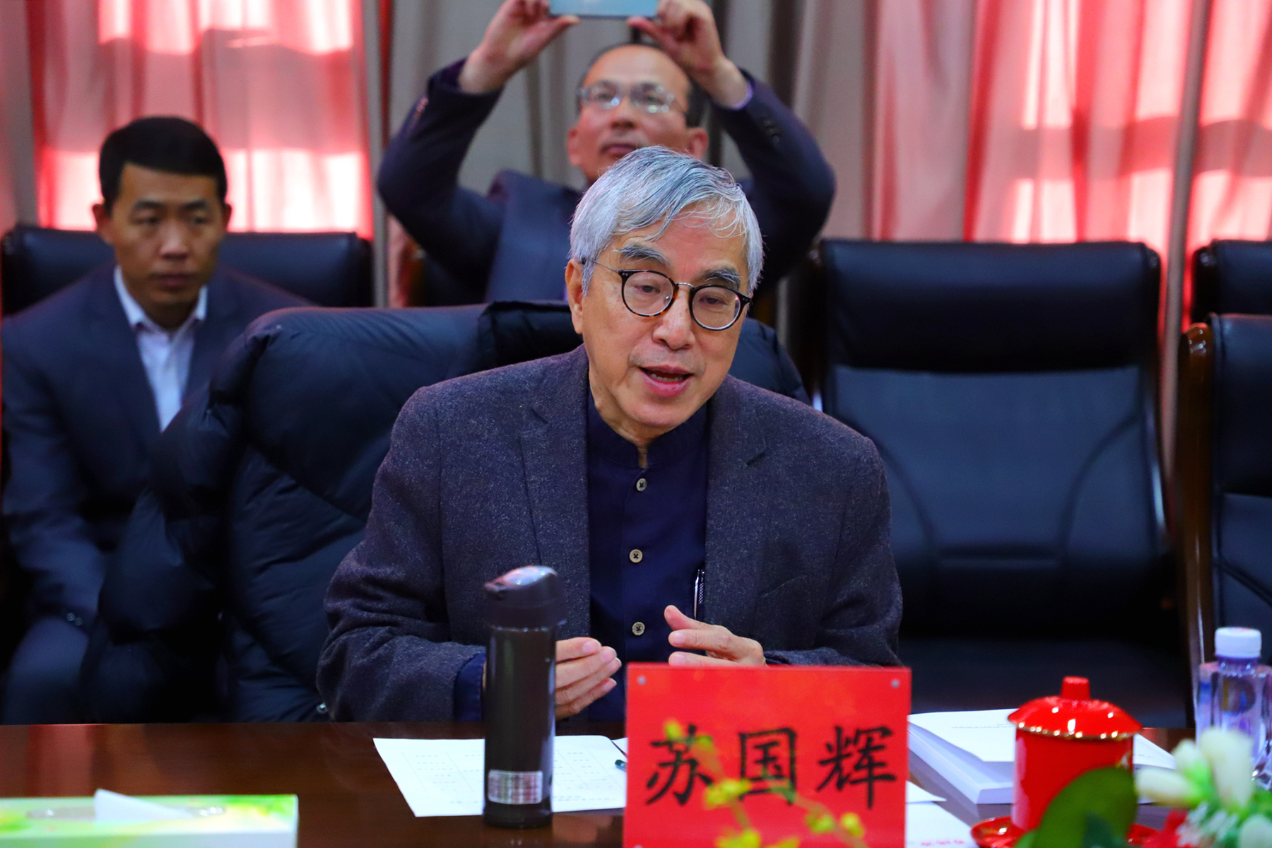 ▲ 媒体记者对中科院院士苏国辉进行采访