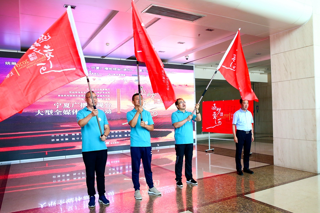 自治区党委宣传部副部长马英俊为《逐梦黄河》西线报道组、中线报道组、东线报道组授旗